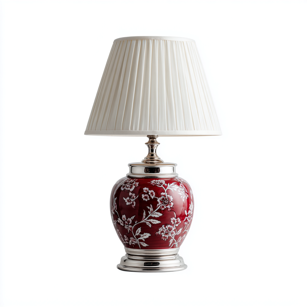 Lampada da tavolo in ceramica e tessuto 28x28x52 cm - rosso-bianco - stile classico decorativo per soggiorno e camera da letto