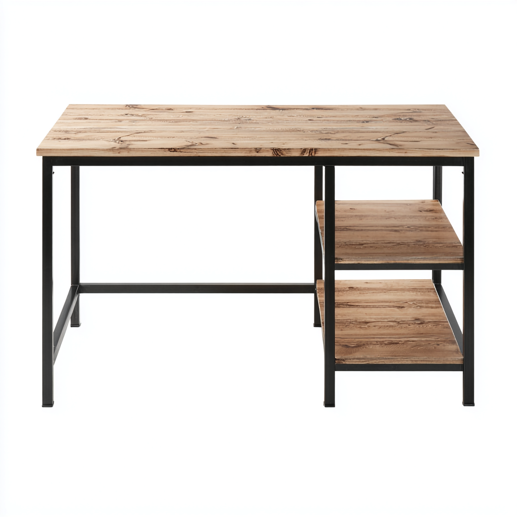 Scrivania in legno e metallo con ripiani laterali 120x60x75 cm - naturale-nero - adatta per studio e ufficio - design industriale