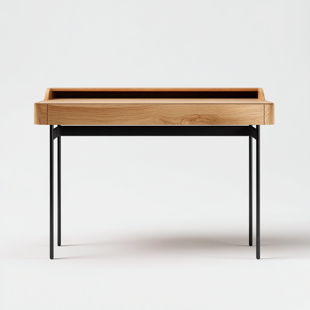 Scrivania in legno e metallo con vano e cassetto 110x50x75 cm - naturale-nero - adatta per studio e ufficio - design moderno