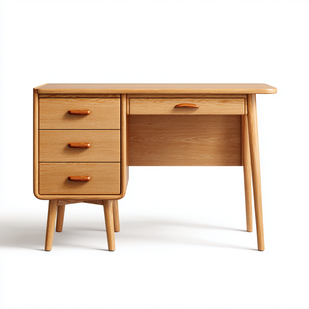 Scrivania in legno con cassetti 130x60x75 cm - naturale - adatta per studio e ufficio - stile moderno
