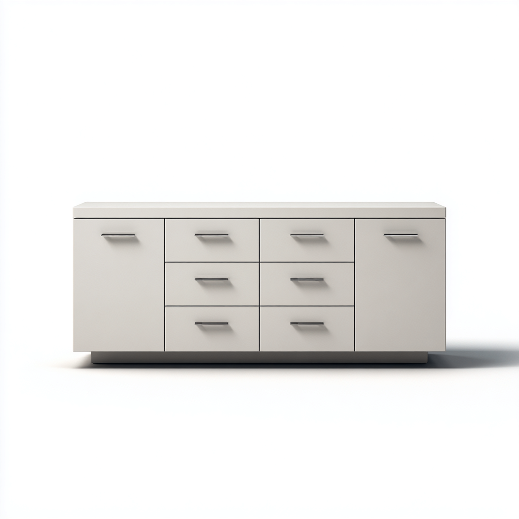 Questa credenza dal design moderno e lineare è pensata per ambienti come soggiorni, sale da pranzo e cucine contemporanee. Le proporzioni equilibrate e l'aspetto pulito contribuiscono a un'estetica ordinata e funzionale.