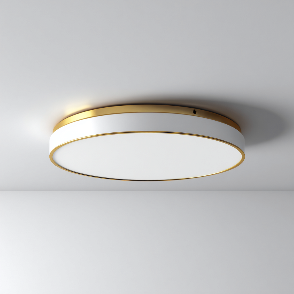 Lampada da soffitto progettata per illuminare in modo uniforme ambienti interni come soggiorno, camera da letto o sala da pranzo. La forma circolare con profilo sottile e la combinazione di bianco e oro donano un aspetto elegante e moderno, facilmente abbinabile a diversi stili di arredamento.
